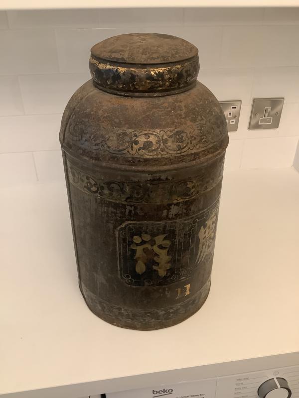 Beautiful large 19th century Chinoiserie toleware tea canister.