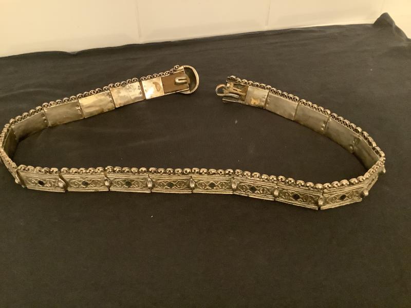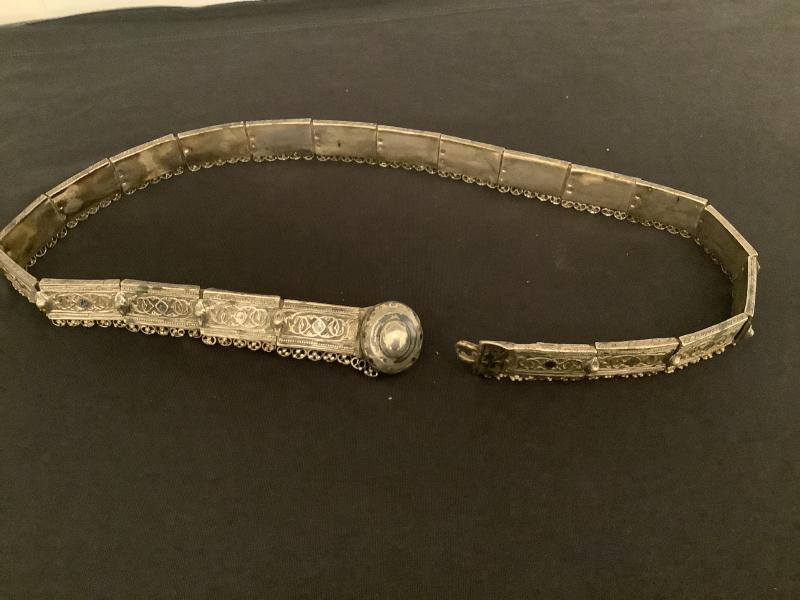 The belt is comprised of numerous interlocking segments a common feature in traditional ceremonial belts .
